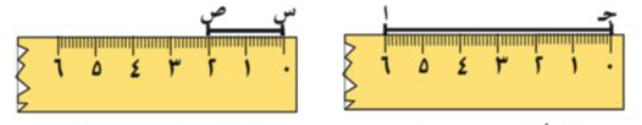 (1) في كل شكل من الاشكال الاتية , لاحظ القراءة علي المسطرة وأكمل :